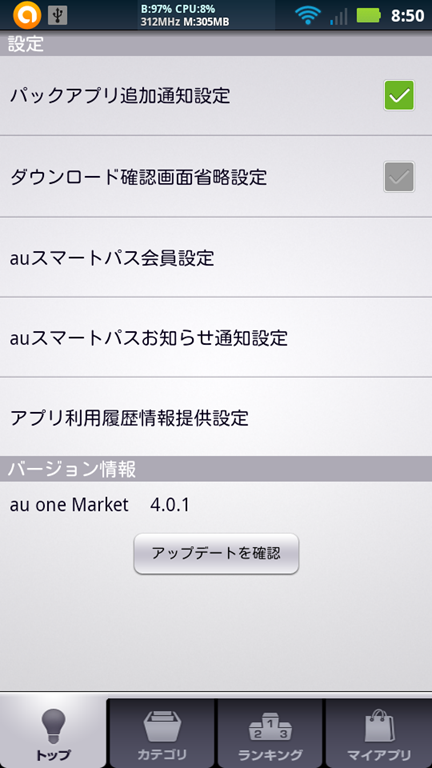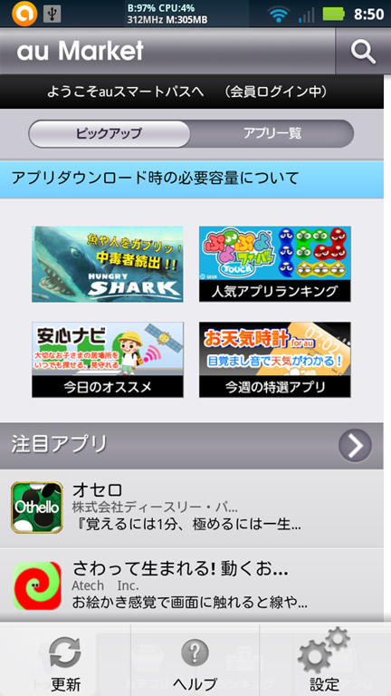 まず最初にau Marketを起動します。恐らく画像のように会員ログイン中となると思います。