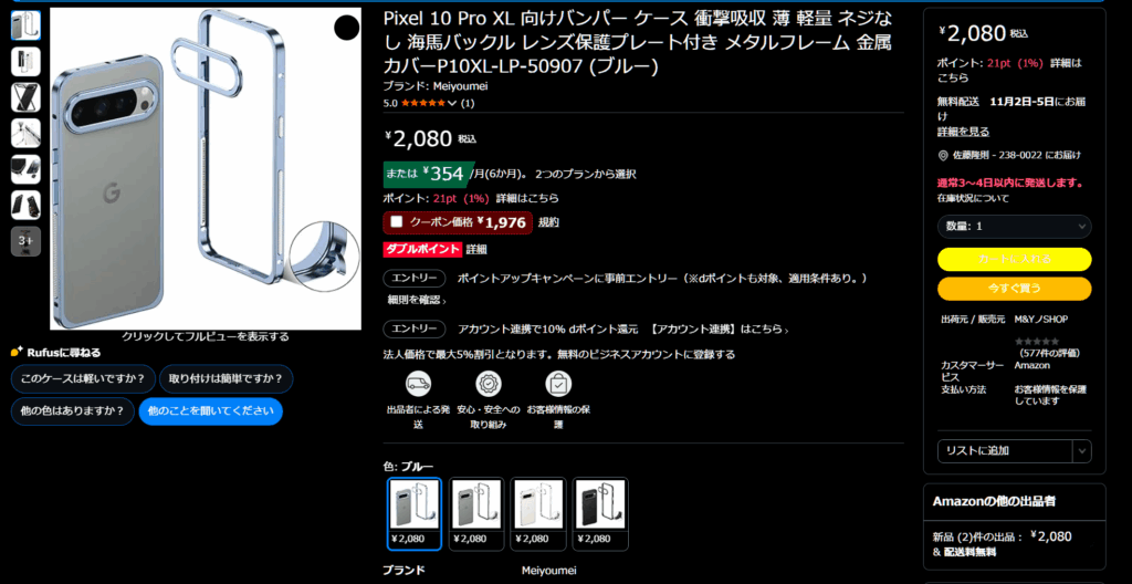 ケースは日本ではなくてAliExpressで買った物なんですが、そちらはケースではなくてバンパーと言ったほうが正しい物です。全体を保護と言うより周囲だけを保護するタイプを買っています。アルミ製で軽量、見た目も本体の色などを損なわないため気に入ってたんですが…