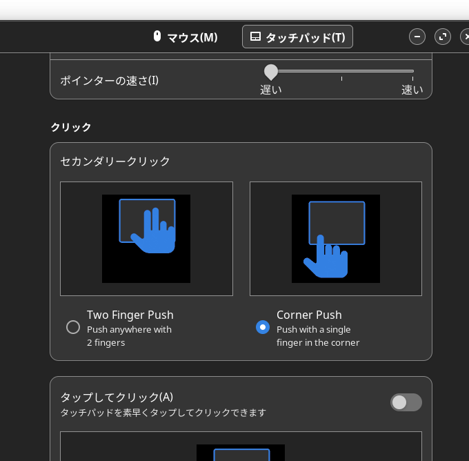 結局、タッチパッドを使いたいときってピンチで画面拡大したいときだけなんだろうなと自分で感じた。なので、カーソル速度をクソ遅くして更にタッチクリックも禁止、スクロールさせるのもエッジを使うようにすればほとんど動かない。そして、ピンチで拡大縮小は使えるという設定に落ち着きました。