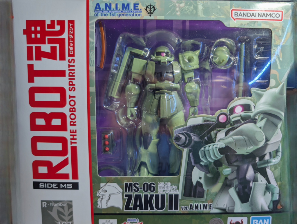 と言うわけで最近買っているのはROBOT魂シリーズとかです。前回はMarkIIだったけど今回はザクです。このA.N.I.M.Eシリーズはディティールが細かいとかではなくてアニメで使われていたロボットっぽいところが出ているのが特徴です。なので、なんとなくですがおもちゃっぽいと言うか、古いように見えてしまうかもしれないです。