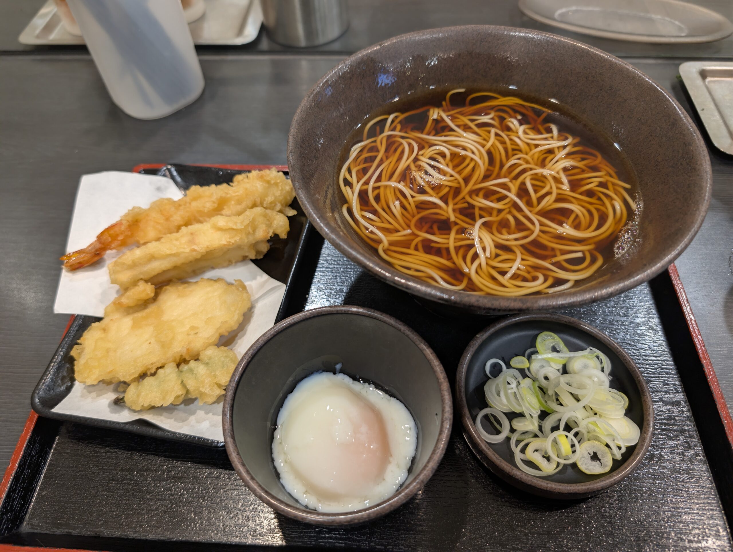エビ天とかしわ天、ちくわ天にオクラまでついてると言うフルセット。普段ならば盛りそばで頼むのですが、温泉卵をつけたかったので温かい蕎麦に。まあ、寒かったのもあるんですけど。