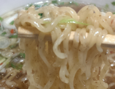 もやしとワケギは後のせになっており、食感がいい。そして、このスープは…そう、昔町のラーメン屋で食べたあの味だ。油が多めになっているが、スープは鶏ガラベースのあっさり風。塩気が少し強めではあるが、ごくごく飲めるスープ。個人的には大ヒットだ。マルちゃんの麺づくりも好きだし、旧カネボウフーズ…今はテーブルマークへとブランドが売られたホームラン軒、あの手のラーメンが気に入る人ならばこいつも気に入るだろう。
