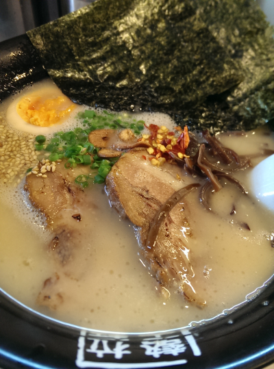具は叉焼、煮卵、のり、キクラゲと万能ネギ、フライドガーリックとごまが少々。熊本ラーメンはにんにくをあまり使わないのでそこは博多風なのかなあ、とか思いつつ食べる。まあ、無難なお味。麺が太めなので博多ラーメンのように固くゆでる必要はなく、替え玉を頼めないほどおなかいっぱいになりました。