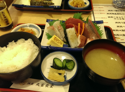 今回も刺身定食を頼んでみることとしました。以前と異なり刺身は5品盛へ。種類が増えて1つずつが減って居ました。